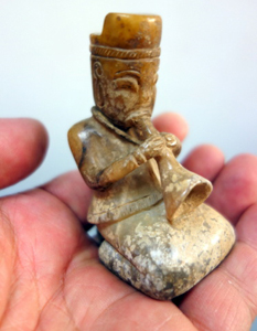 今回ご紹介する掌にのる古色ある六体の玉の楽人たち、彼らはいったいどこから来た楽人たちなのでしょうか?この作品の元所有者の骨董商の方はフィリピンで買いだしたものだといっていました。場所はミンダナオ島の古い街、ブトゥアン(BUTUAN)というところだそうです。ここにはいくつかの博物館があり、地元の古い墓や遺跡から発掘されたさまざまな美術品が陳列されていて、観光客に見せていたようです。しかし観光客は大半がリゾート目的の人たちで、こうした発掘品に興味のある方はきわめて少なく、そのため地元の博物館の経営は苦しかったようです。骨董商の方はそこの博物館が経営難になった時に、売り立てがあり、その時にたまたま買えたのだと話してくれました。地元の古墓から発掘されたものだそうです。