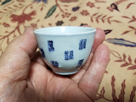 掌の骨董74. 李朝白磁染付福寿文杯