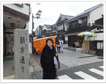 輪島の朝市通り(石川県輪島市河井町)の入り口での筆者