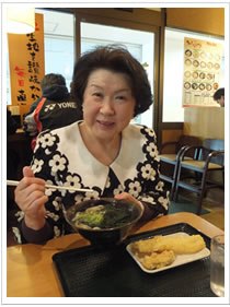 わかめうどんとサイドメニューの天ぷらを食べる筆者(2011年2月)