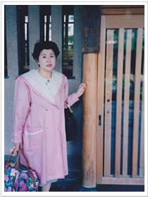 盆梅・皿鉢料理と一緒に写っている筆者(1991年3月)