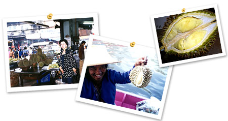 | ドリアンは英語でDurianと書きますが(タイ語ではトゥリアン)、この語源はマレー語の「とげ」を意味する「Duri」です。タイでは、年間100万トン以上のドリアンが生産されており、圧倒的に世界一の生産量です(第2位はマレーシアで、タイの半分程度)。 タイでは、既に300年以上前には栽培されていた記録が残っています。 強烈な匂いで有名ですが、果肉は非常にクリーミーで甘く、カスタードのようで、「果物の王様」と言われます。 著者は大のドリアン好きです! |