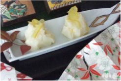 一般的にはさつまいもと栗を使います。さつまいもに含まれるビタミンCは加熱に強いタイプで、食物繊維も含まれます。写真は百合根を使って作ったもので、上には柚子ジャムをのせました。百合根には滋養強壮、咳止め、利尿作用などの効果があります。