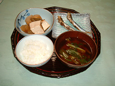 それに餅菜のお味噌汁。イワシの丸干しです。