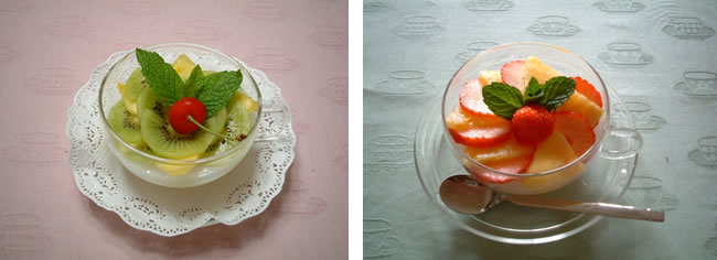 - シロップをかけミントを飾り、サクランボも飾ります。