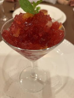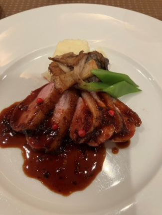 私はメインは2番目の鴨胸肉のロティを選び、デザートは1番目のオレンジとグレープフルーツのジュレを選びました。