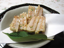 どれもおいしく舌鼓。突出しに銀杏の形に切ってある野菜が添えてありました。それもものすごく小さくてかわいらしく・・・。