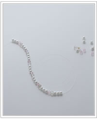 ※テグスにパールやビーズを通していく時、パールやビーズの間に若干の余裕を持たせるようにすると次の作業がしやすくなります。 -