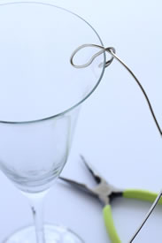 アルミニウムワイヤーの最初に、器にひっかけるための曲げ輪にしたものを作る。