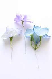 多少の花びらのめくれは仕方がありませんが、1側面で1~2花の顔がみえるようにアレンジします。(ピンセットや先端が細いペンチなどを使うと便利です)