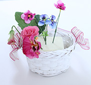 - カゴの大きさ、アレンジの大きさ、カゴの両端につくるループと流すリボンの長さを考慮して、リボンの長さを決める。