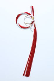 - 上記、束ねた小松バインを水引飾りに縛りつける。