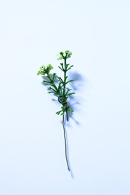 - ミモザ、他の小花、葉をUピン(#22グリーンワイヤー)留めやグルー接着で大体一定の流れの方向を意識しながら、アレンジしていく。