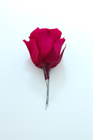 - プリザーブドフラワーのバラは、ワイヤー 裸#24 1/4本でクロスメソッドのワイヤリング。テーピングする。(第3回 バレンタインのプチブーケ参照)