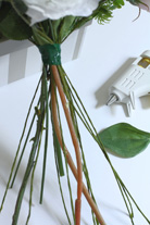- スプレー状にたくさん花がついている花は少しお花をカットして小分けする。そのままの茎の長さを活かしたものはそのままで組む