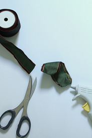 オーナメントは、直接グルーをつけて、アレンジする。 - 茎をアレンジに加える