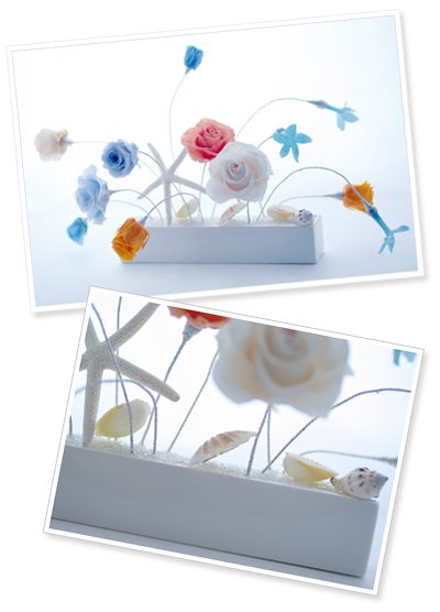 そして、プリザーブドでは難しかった動きのある「空間を活かしたアレンジ」にチャレンジします。