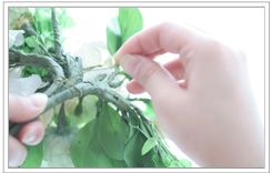 - (F)ブーケのハンドル部分の下準備をします。