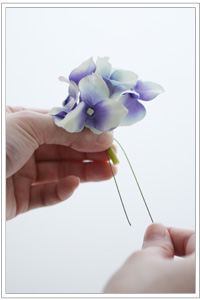 アジサイ(アーティフィシャル)を小分けして、ワイヤリングします