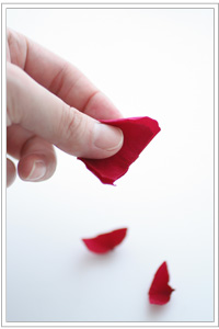 中心の芯あたりの花びらが5~7枚くらいになるまで、花びらをとりはずします。 -