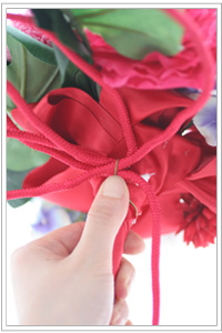 和ひも(ワイヤー入り)を形作り、しっかりと根元をワイヤーでしばります。