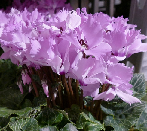12月になりますと、シクラメンが店先に並び始めます。最近は花色や花形がバラエティ豊かになり選ぶ楽しみが広がりました。お店で売られているシクラメン(ペルシカム)は、トルコあたりの温暖な地域の原種から改良されたため、寒さには少し弱いです。ミニシクラメンも霜に当たらないように気を付けましょう。原種シクラメンに関しては第7回の原種シクラメンを参照して下さい。