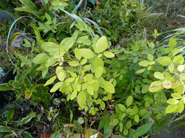 朱金ハギ・・・新葉が黄金色で美しい。秋の紅葉も綺麗です。