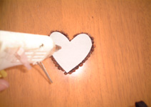 | ⑦ボンドを塗る。 | ⑧ドライローズをハートの 形になるように貼り付ける。 |