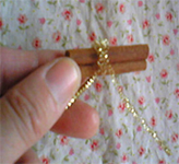 | (4)巻きつける。 | 3つにカットしたシナモンをブイヨンワイヤーをシナモンにつなげる。 | |