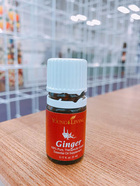 バケツに張ったお湯にジンジャー精油を2~3滴落として足を入れて温める。