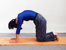 | 15のポーズから猫のポーズへ。反らした腰を丸くする。 | 全身をリラックス。 | 両手を揃えて手の平、前向きにして反る。 |