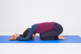 (1)正座から上体を前に倒して、両手を組んで後頭部を挟み、頭を床につける。