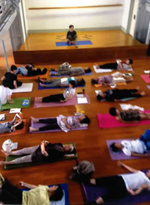 アーサナ実習でも一つのポーズへ向かっていくプロセス、ゆったり、言葉少なに、静かな声でのリードから多くを学ばせていただきました。