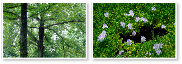 夏近くになると池全体を紅い睡蓮が覆い尽くします。池周辺ではカワセミが池の小魚を狙う姿も見られます