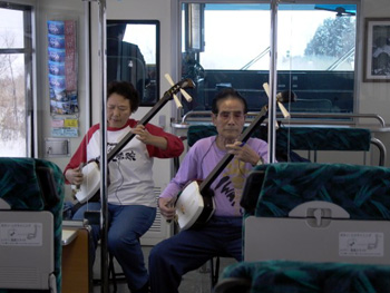 | 「リゾートしらかみ」車内で行われる津軽三味線の生演奏 |