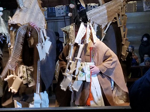 わたしはもう25年前からこの「延年の舞」に深く感動して、できる限り毎年拝見して参りました。日本骨董学院の会員さんたちとも何度もご一緒いたしました。素晴らしい舞は、何度観ても感動します。