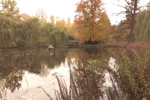 とても静かな公園で、戦火を受けずに昔の様子を今に伝えてくれています。大きな並木道もあり、銀杏の黄色の世界がとても美しいです。自然の中に川が流れています。池もありとても静かで、カフカがドーラと好んで散歩した場所として最適に思えました。