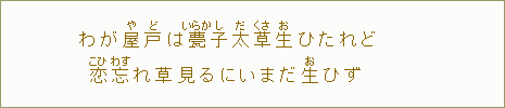 詠われており、恋い心のなきことを強調させるために「子太草」を対照的に歌いて、恋の苦しさから逃れたいと願いながら