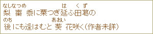 万葉人たちはこの実りの季を迎えると、食の実りは無論、恋の逢瀬の実りを望して如何ばかりか心をわくわくさせたことかが伺い知れます。