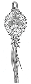 その卯の花の美しく撓む姿を、白花躑躅 を出合せて砂篭 形花入に挿 けた図版[1]と、「薬玉飾り」図版[2]を参照して下さい。