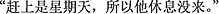 「ちょうど日曜日で、彼は休みで来なかった。」