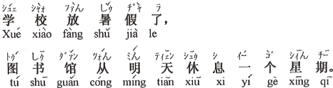 - 学校は夏休みになって、図書館は明日から一週間休みです。